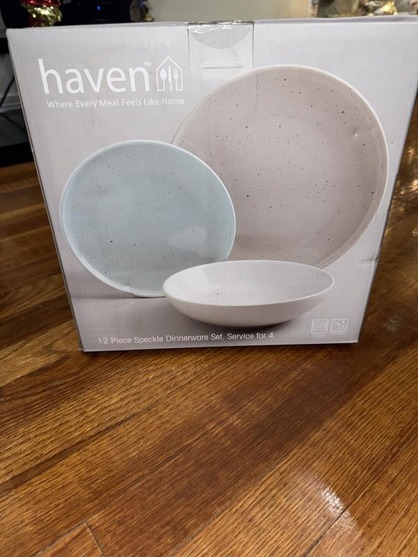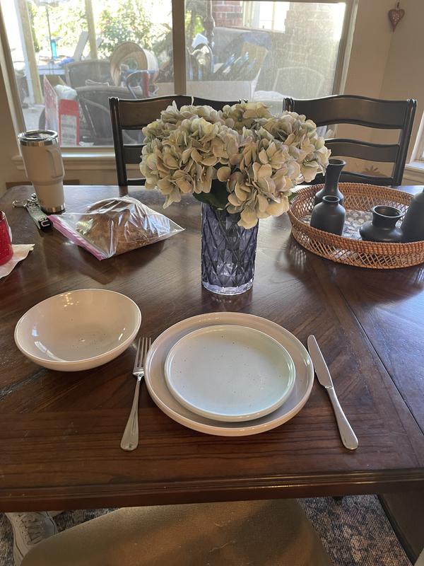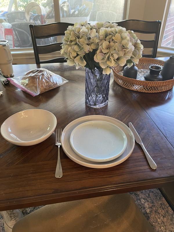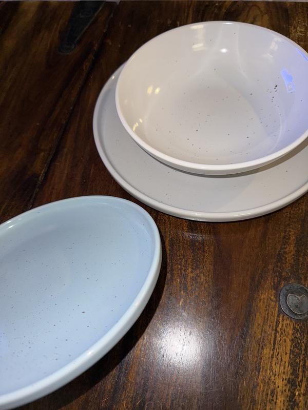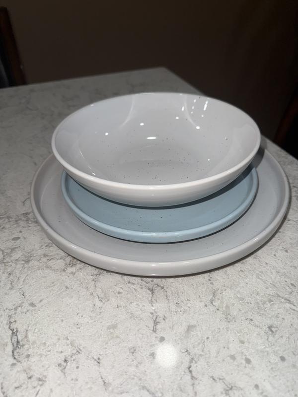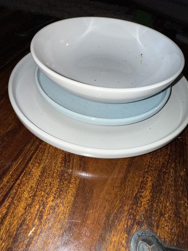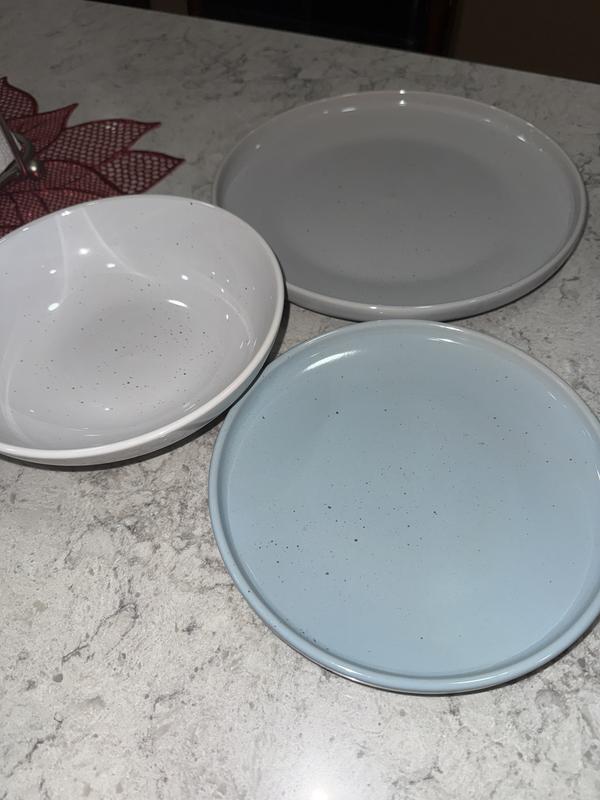 I really like this set of dish ware and can see myself using it forever! The muted colors make them classic enough for everyday use, but the nice stoneware material and speckle design elevate a normally common household set. I love the light blue bread plate, as it adds a small pop of color and pulls everything together, making it look chic and intentional. The dish sizes are very convenient and perfect for any meal or snack, and the bowl is great for anything - soup, grapes, oatmeal, trail mix - making it an easy choice to add a sense of style to any event, big or small!