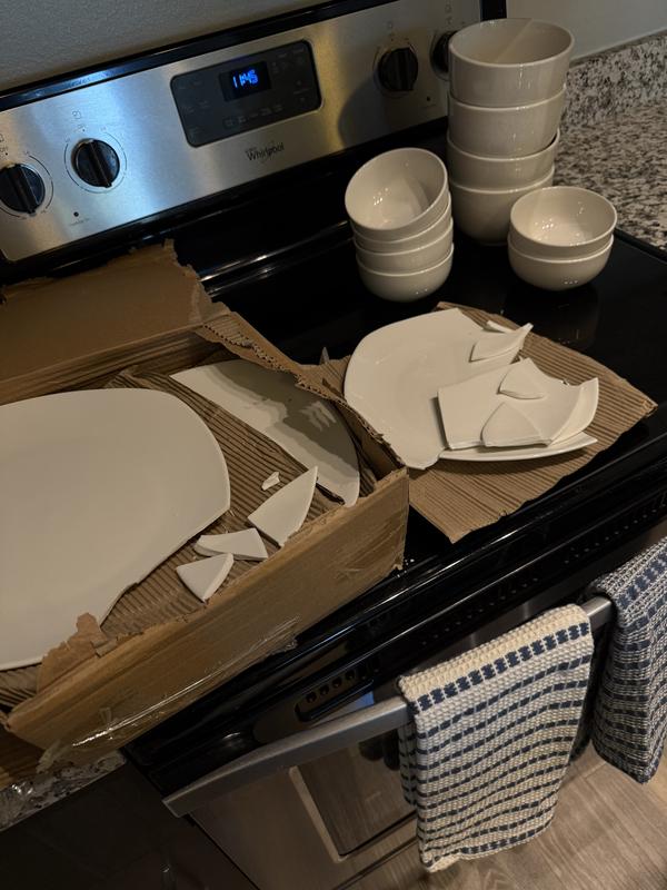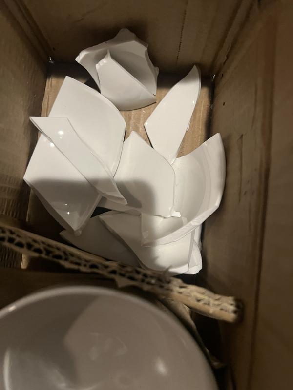 Unfortunately, several items arrived broken. Three of the large plates were broken, one of the small plates was broken, and one small bowl was broken. I’m very disappointed and hope this can be resolved.