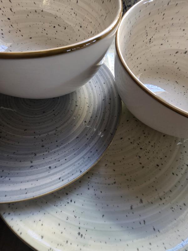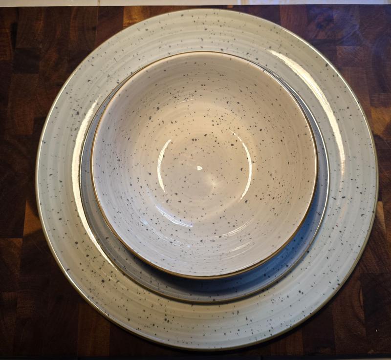Absolutely love this set. Colors are calming and inviting. Something about eating off lightly colored dinner plates just seems right compared to super dark ones. These feel premium with just the right amount of heaviness. Speckled look adds character.