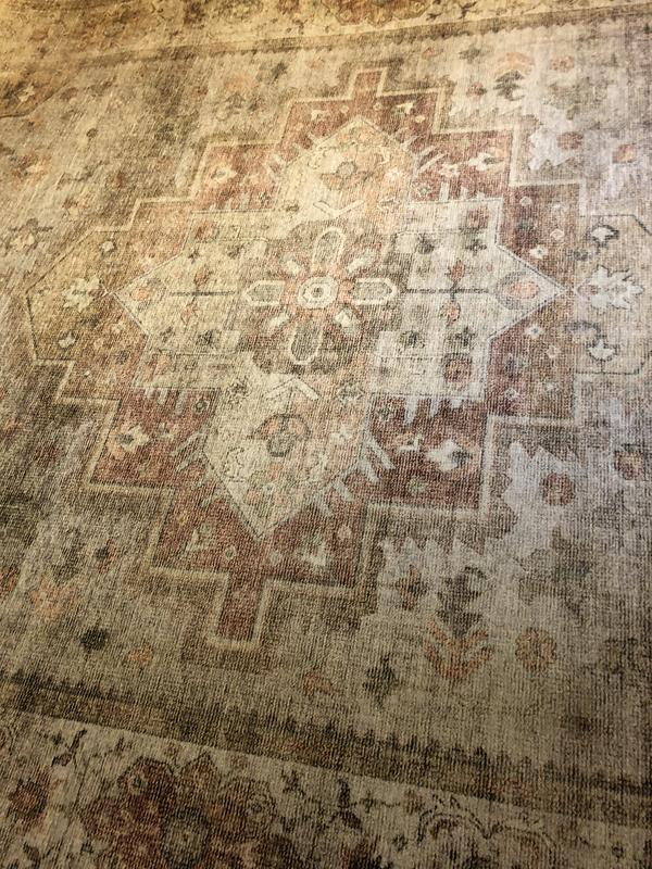 I received this Loloi II Heidi, DOVE / SPICE Area Rug. I actually use it for my outdoor covered patio / pavilion area. it looks nice with the stone around it. When it came I was a little surprised that it has a faded appearance vs light colors. it's not at all thick but is soft to walk on barefoot. Overall nice fit to our outside area.