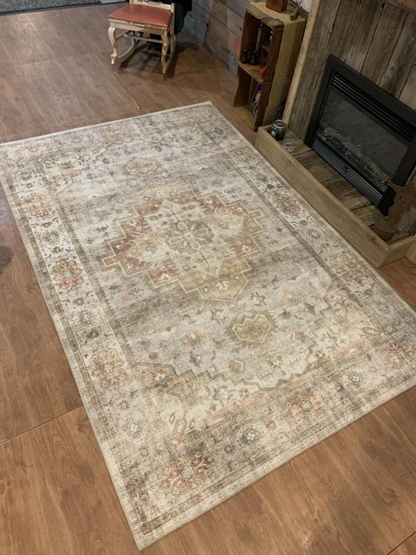When I first opened up the rug, I did not think I was going to like it because it looks very old and faded, but once I set it down in the living room it really looked good. It made the room feel and look more comfortable. It is not too heavy material and it is easy to spot clean in case of any accidents or spills. It is also easy to vacuum.