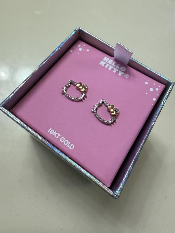 Hello Kitty Diamond Silhouette Stud Earrings (1/8 ct. t.w.) in 10k White & Rose Gold
