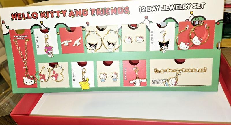 Sanrio Jewelry Advent Gift Set: Earrings, Necklace, Bracelet & Charms Mix & Match Christmas Calendar Box Collection