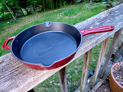 The enamel finish on the skillet is so nice and buttery. The cast iron is skillet has a great heft to it and it's a solid piece. The package arrived quickly and smoothly.