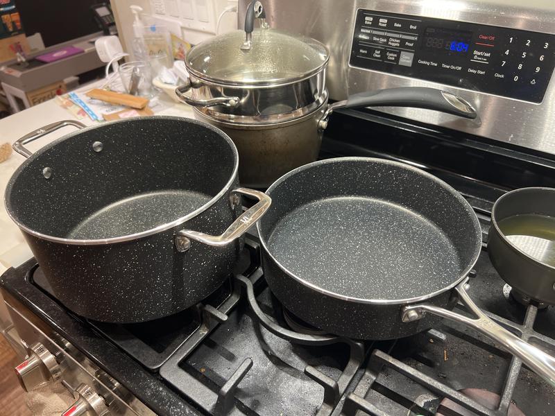 Thank you so much for sharing your experience! We’re delighted to hear that you and your husband are enjoying your cookware, from the even cooking and easy cleaning to the design. We also appreciate your thoughtful feedback about the saucepan sizes and lids, and we’ll be sure to share it with our product team. It’s wonderful to know the set is serving you well, and we hope it continues to bring you great results for many years to come. If you have any questions or need assistance, please feel free to contact our customer service team at hello@henckels.com and any one of our team members will be happy to help!