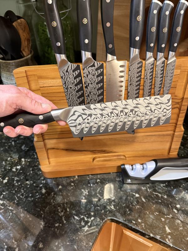 I’ve had one of their knives for several years now, they stay sharp and are great quality. I purchased the Damascus set, and I’m more than happy with them. Razor sharp, the blades look amazing, and the handles fit your hand perfectly. I highly recommend their knives.