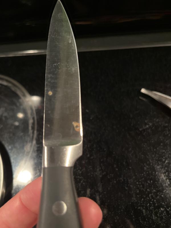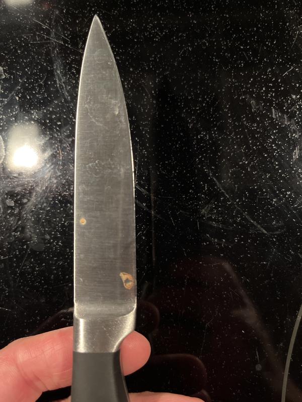Rust spots already! I have had the knives less than 1 week and a rust spot formed that I can’t scrub out. Very disappointed, planning to reach out to Macy’s