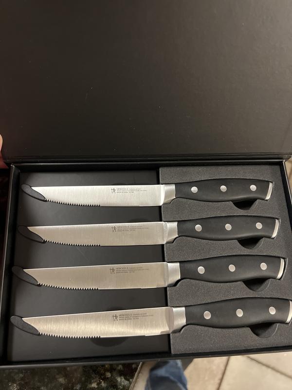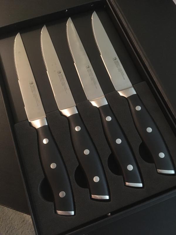 Great set of 4 henckels knives. great for everyday use nice weight to them great cut come nicely gift-wrapped in a nice box. good presentation.