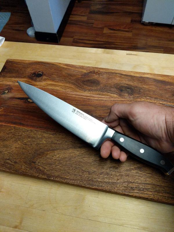 Just bought my new Henckels Premio Forged 8" Chef's knife. Can't believe I spent so much money on one knife, but my sister said they are worth it and great to have a knife that doesn't need to be sharpened or seldom. Can't wait to try it out!