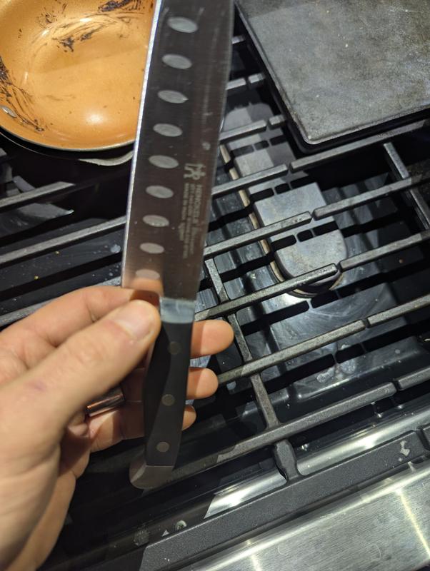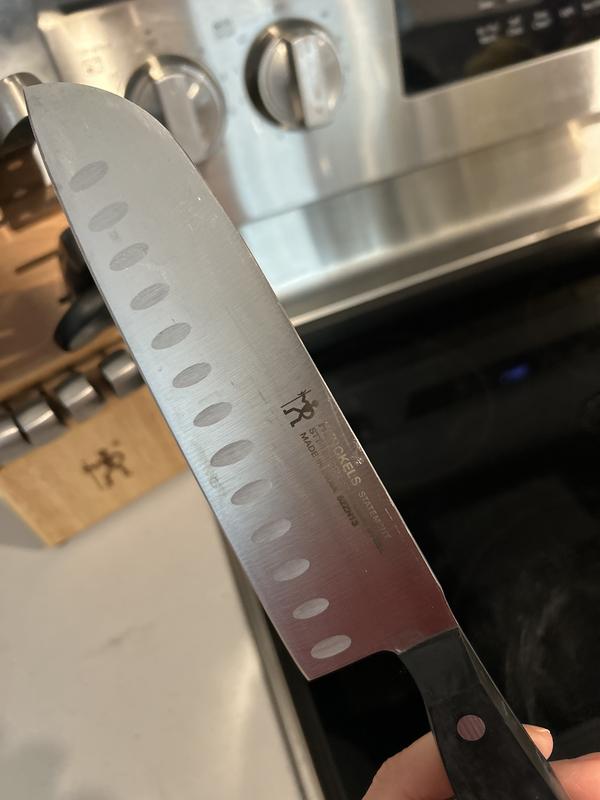 Not very happy with this set at all. First off Henckels is supposed to be a german brand,theres nothing german authentic about them. All the knives came with little dings and pits in them,look like theyve been used for 4 years and sent back. All had black smudges on them and scrapes on the handles. A few had what looked like old dried food stuck on where the blade meets the handle. Im very displeased henckels,real dissappointed.