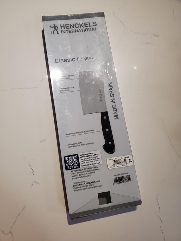 I purchased TWO Cleavers. It is a replacement for one that is 30 years old. I've been able to chop meats & vegetables with ease. A HENCKEL blade remain sharp for a long time. I've purchased numerous knives to complete my collection. Carving fork, (boning 5.5 & carving 8" ) knife, Knife set 4, Knife set 5. I am very happy with my purchase.