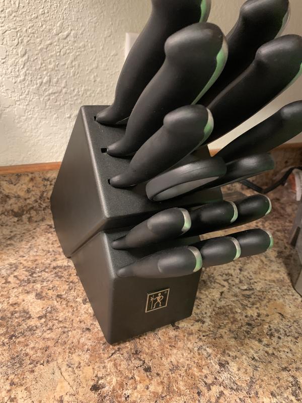 I bought this set to replace another Henckels block set, and chose this particular set because it was dishwasher safe. I put them all in the dishwasher before using them and they had rust spots after one wash. They’re now just taking up room on my counter until I can replace. I do NOT recommend and they are clearly NOT dishwasher safe.