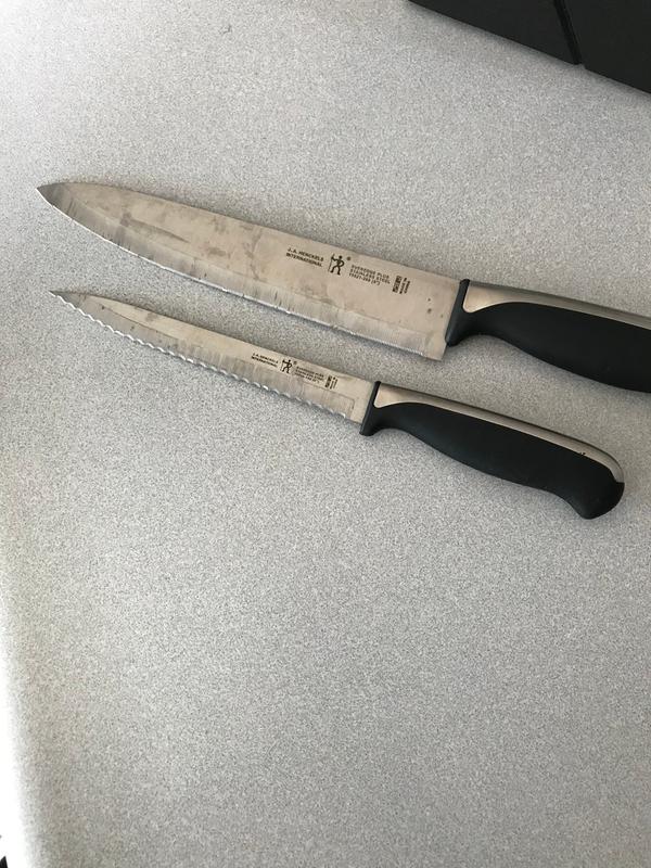 Hi Booklover28, Thank you for your review and for your feedback. We are sorry to hear about your experience. Henckels Everedge Plus is manufactured from superior stainless steel. Zwilling stands behind all their products and we are always excited to provide you with a resolution. Please email our consumer relations team directly at hello@zwillingus.com with your name and contact information, pictures, they will be able to assist you.