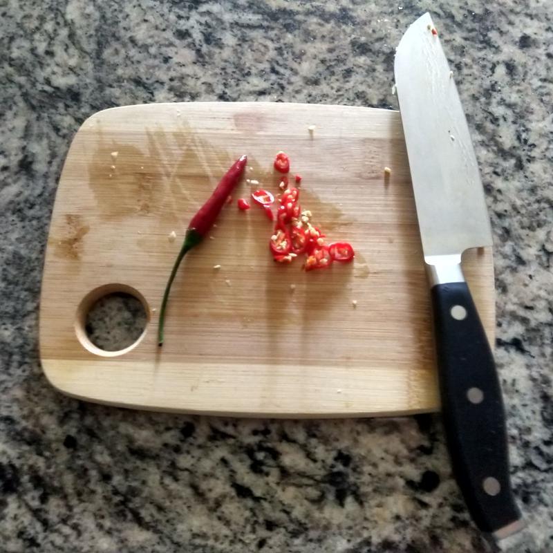 1. Slight curvature at the end of the knife lowers amount of scratches on the cutting board. 2. Small air gaps on the one side of the knife do not always prevent food from sticking to the knife due to adhesion.