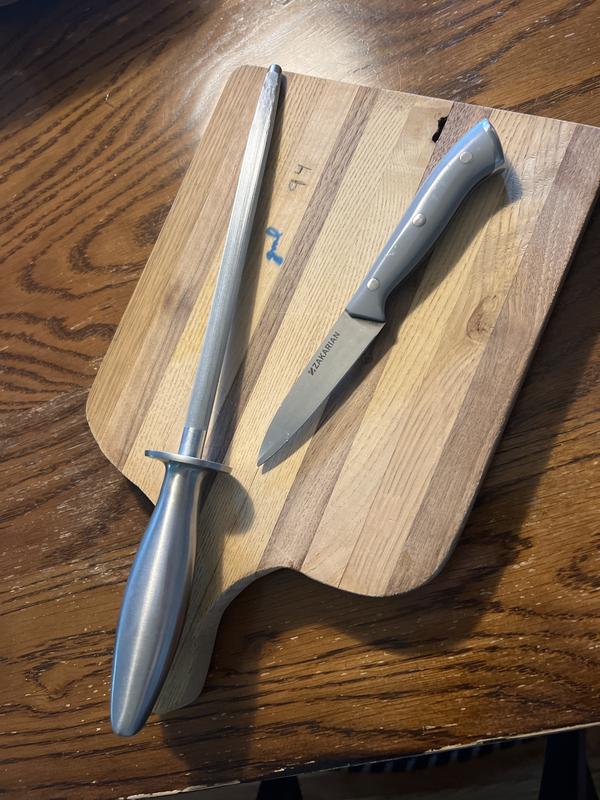 I didn’t realize that the sharpening steel isn’t actually for sharpening as many think. It’s a tool to use in between sharpening. I wish I knew that. I wish my friends also knew because they mailed me this sharpening steel as a gift for my new knives. I need a whetstone to sharpen. You will too. I used the sharpening steel and yes, it did help. But just don’t expect the sharpening steel to sharpen as its not what it’s really for.