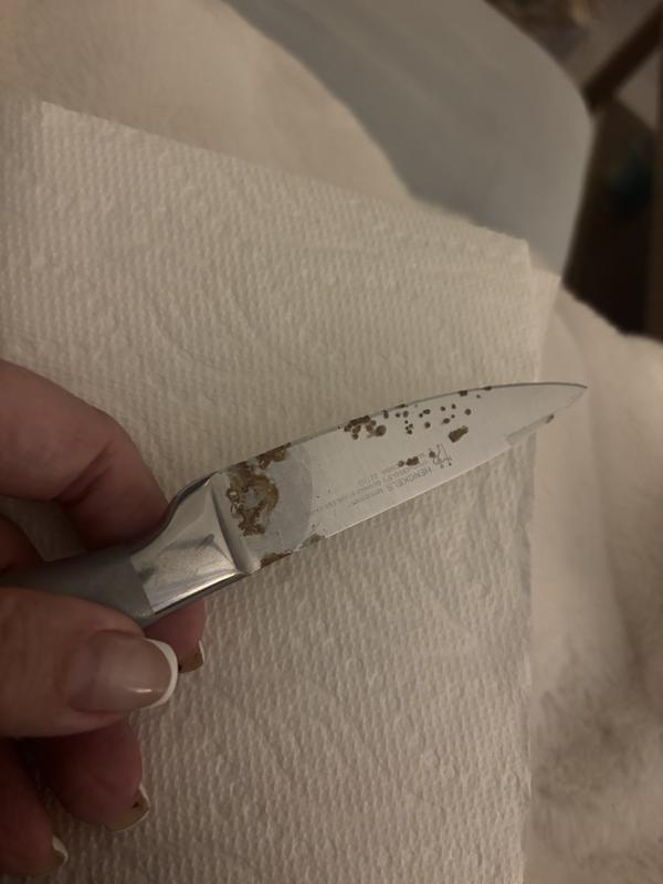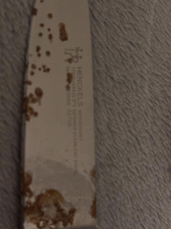 The knives have multiple rust spots and after many attempts to clean them, will not be removed.