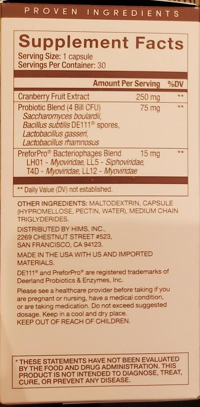 I highly recommend using this product because it has really helped increase my flow of urination. Not that I had a problem, no I didn't. But the cranberry fruit extract I feel played a major role. I did not have any adverse reactions after taking this product either. I am very pleased and will continue to take Hers women's probiotic Start.