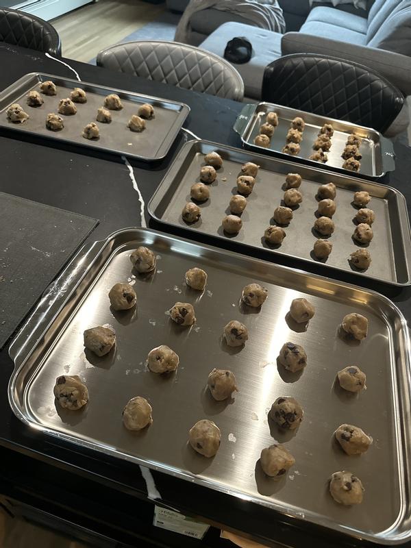 I am very impressed with these baking sheets. I have made several meals with them and the food comes out awesome. Roasting vegetables, potatoes is a breeze and cleanup takes no time. I wish I had these 20 years ago. Thank you for making this product.