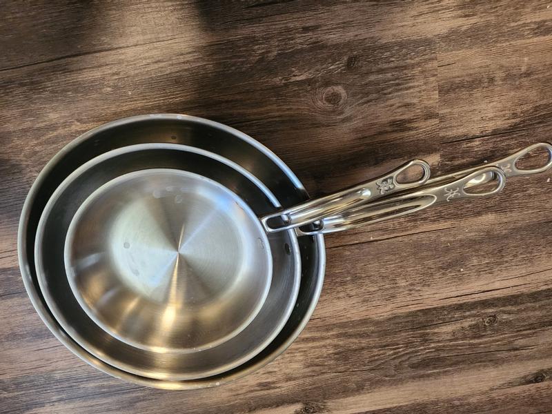 I bought the 12-inch frying pan—absolutely love it. Flush rivets are the only way to cook. The pan's weight and even heating are perfect.
