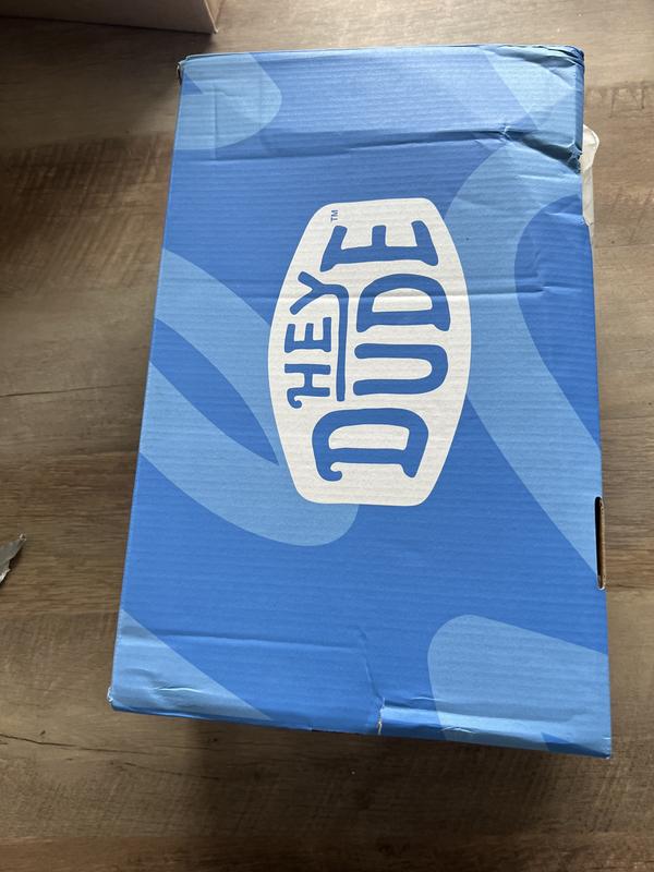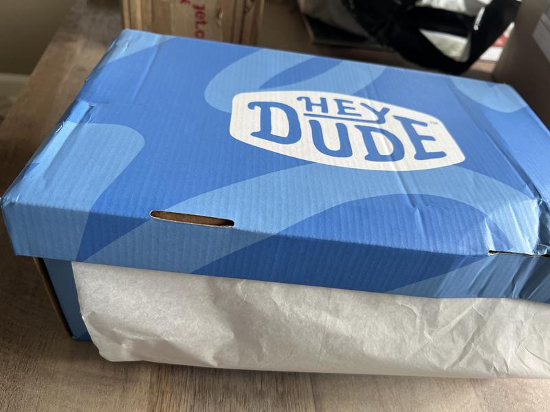 Ordered a pair of Hey Dudes for a Christmas gift . The way it was shipped horrible , came in a bag instead of a box .. the shoe box is beat up , crinkled , the paper inside appears to have been used , holes torn inside - how embarrassing to gift and try to wrap !