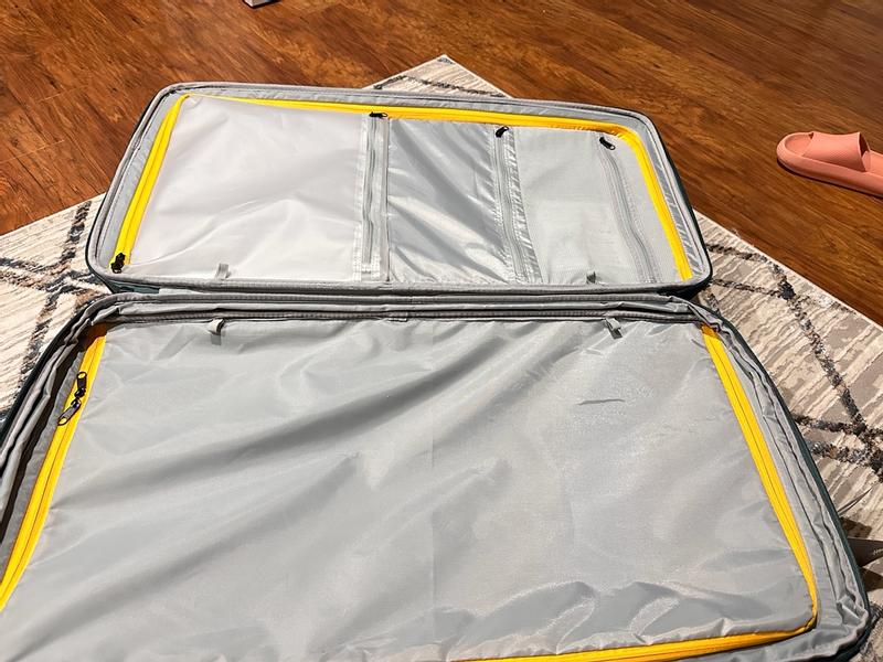 I haven’t had a chance to use this suitcase yet, so my review is based on functionality based on my needs in a suitcase and visual appeal. First, I love the colors. No notes there. I also love how many pockets there are, both inside and outside of the suitcase. There’s also a lot of space inside, and I love that it opens in half and has sectioned off zippers on each side, allowing for one side for clothes & one side toiletries and such, without risk of the clothes getting ruined. My biggest con is that it’s not a gliding suitcase, as it only has 2 wheels. I wish it had the 4 spinning wheels, they’re much easier to travel with. Overall though, I’m excited to use this!