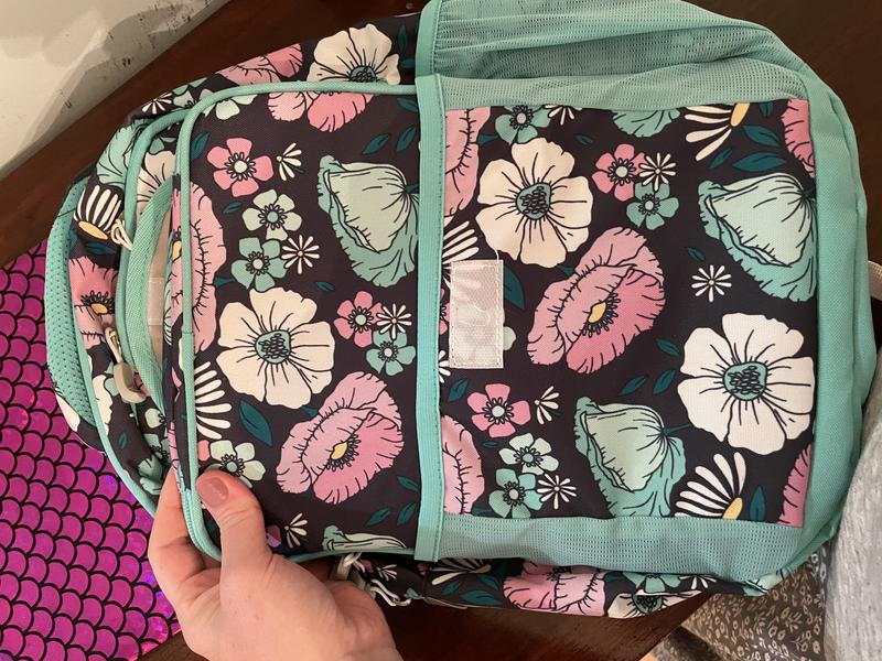 We love this back pack! Sturdy material, side mesh pockets, 2 large zipper areas with a folder pocket in the larger area. front pocket holds the lunch bag. it's not a huge lunch bag but it comfortably fits a lunch able, banana, applesauce, yogurt, and cpl zip bags of snacks. The print is great for kids while not being cheap cartoon type back pack!! I don't leave reviews but felt it was important to point out that this is in fact a VERY NICE back pack!! don't sleep on this :)
