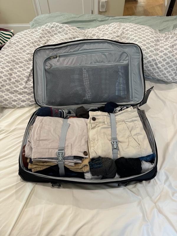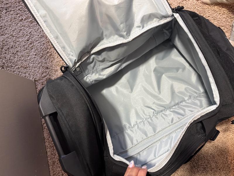 The High Sierra Pathsetter Carry-On wheeled duffel has so much storage! I used to use a traditional wheeled carry on bag, but this bag is so much better. Super durable and is made with quality material. Love all the different storage compartments and it has some external storage pockets with easy access.