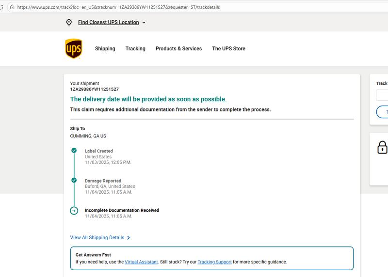 I have not received this package, and the status shows , Incomplete Documentation Received 11/04/2025, 11:05 A.M. Need help.