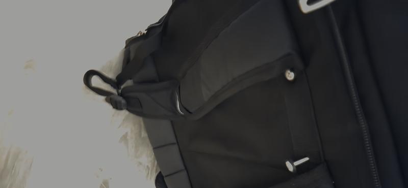 Great bag! I was a bit confused at first regarding the straps, but the flap attaches by Velcro to the bottom of the bag between the wheels.There are little pads that cover the wheels so that they don't rub you