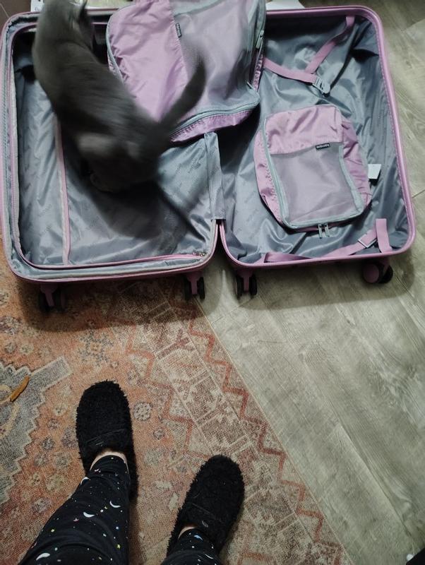 Super cute Travelers Clib Hillsboto Collection 4PC expandablr rolling HD luggage set in Mauve Orchid color! Super convenient and functional to make travel comfortable