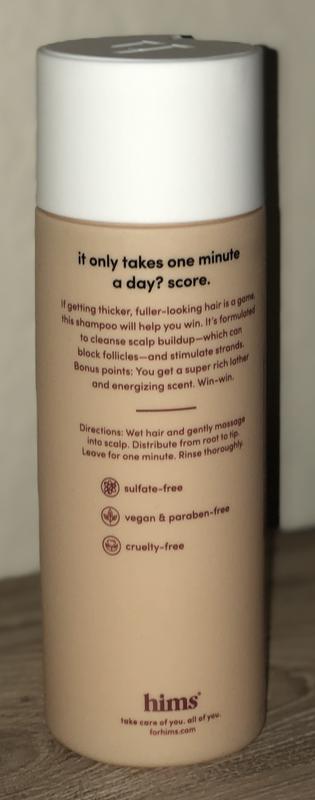 I recently received my first bottle of hims shampoo about a week ago and I am very pleased with the quality of this shampoo. My hair is noticeably thicker and fuller. I would recommend this to anyone that struggled with hair loss