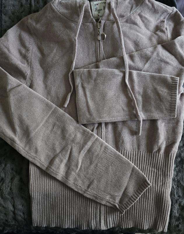 I love this hooded jacket, it's beautiful, soft and comfy! The ribbed waist area and matching cuffs, and the heart-shaped zipper pull add very nice touches of style.