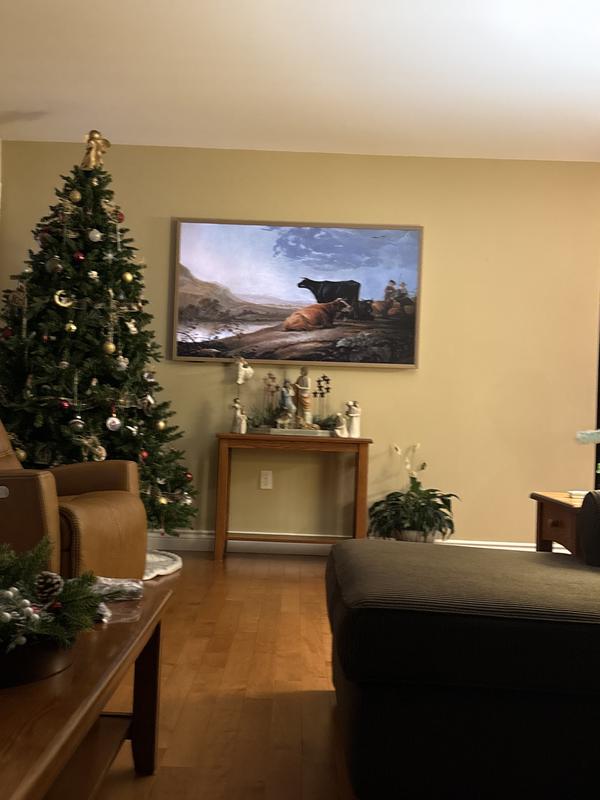 We really like our canvas TV the mat finish all the antique gear really helps with all the light management and I like the slim frame beside it. Really give it a very good look.