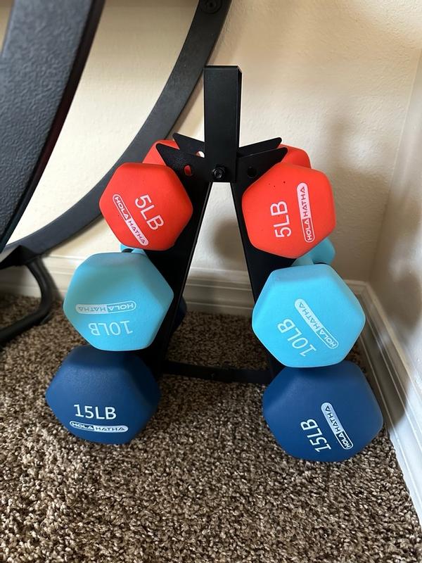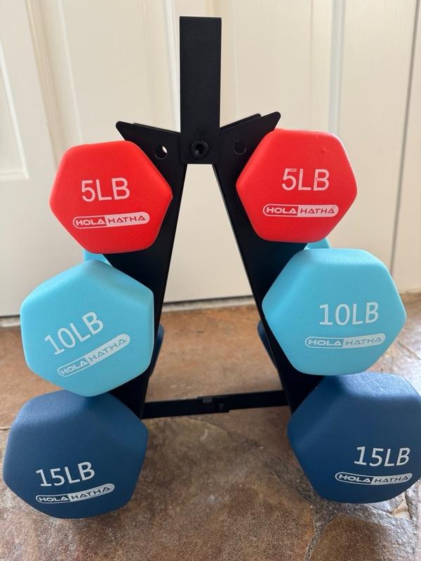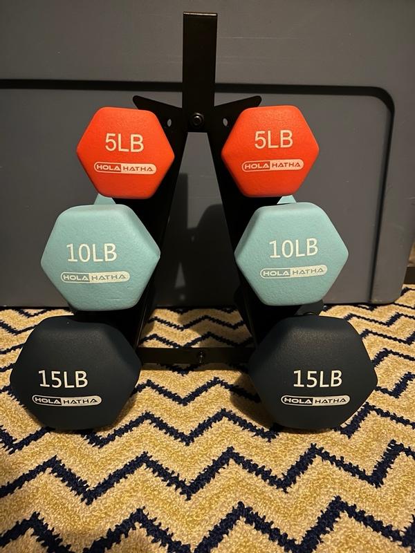 I recently received in the Neoprene Dumbbell Weight Set with Storage Rack, and I couldn't be happier with my purchase! This set is incredibly versatile, allowing me to gradually increase my strength and endurance with the 5, 10, and 15-pound options. The neoprene coating provides a comfortable grip and prevents slipping, making each workout session safe and efficient. Plus, the included storage rack keeps my space organized and tidy. Whether I'm toning my arms, sculpting my shoulders, or adding resistance to my cardio routine, these dumbbells are the perfect companion. I highly recommend them to anyone looking to enhance their fitness journey!