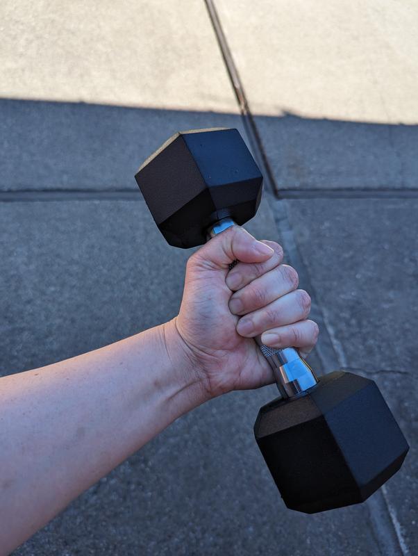 These dumbbells are amazing! The weights pounds are perfect for me. You have a great grip on these. I highly dislike the rubber smell it leaves behind so I’m trying to figure out how to get the smell out. In all these are great for working out at home.