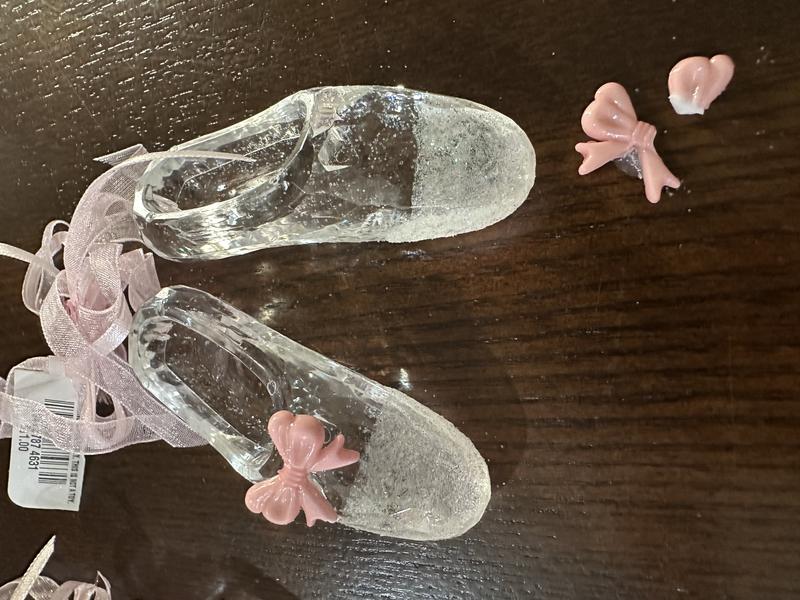 I ordered this ballerina shoe ornament for my granddaughter as a small gift for her upcoming recital. I received the order and upon opening the package found it damaged. One of the bows was broken off. I returned the ornament and reordered. The second order had a broken bow as well. This is a very pretty ornament but very fragile and it does not appear to be able to survive shipping.