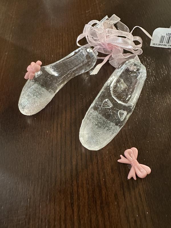 Nice ballet slipper ornament. Larger than expected but very pretty, clear & shiny. Size makes a good addition to my collection.