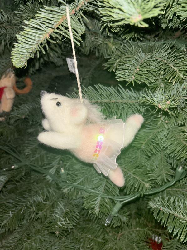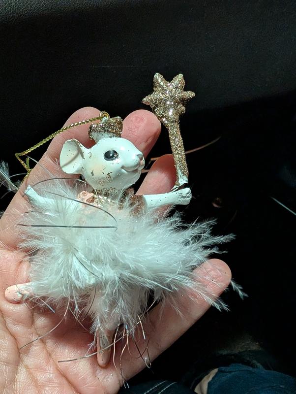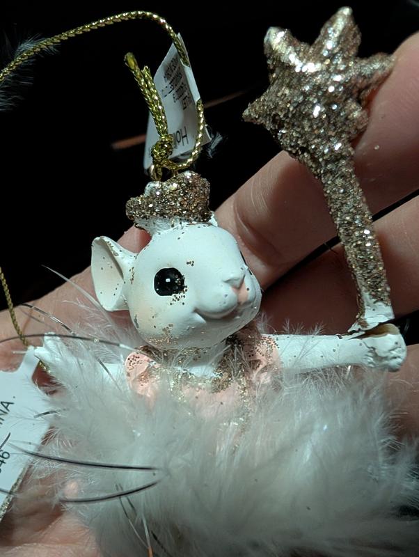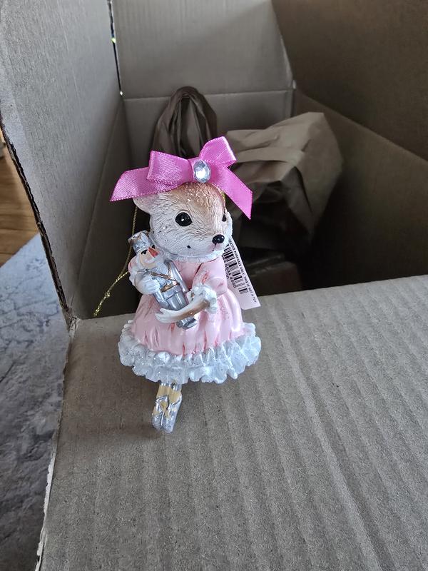 This one i am very and love,very well made, she is so cute holding her soldier, her dress is very beautiful also,perfect for the tree, i bought 6 of this little mouse, adorable, this one u will ganging it and u tree definitely my favorite from the dear i bought, recommended it.