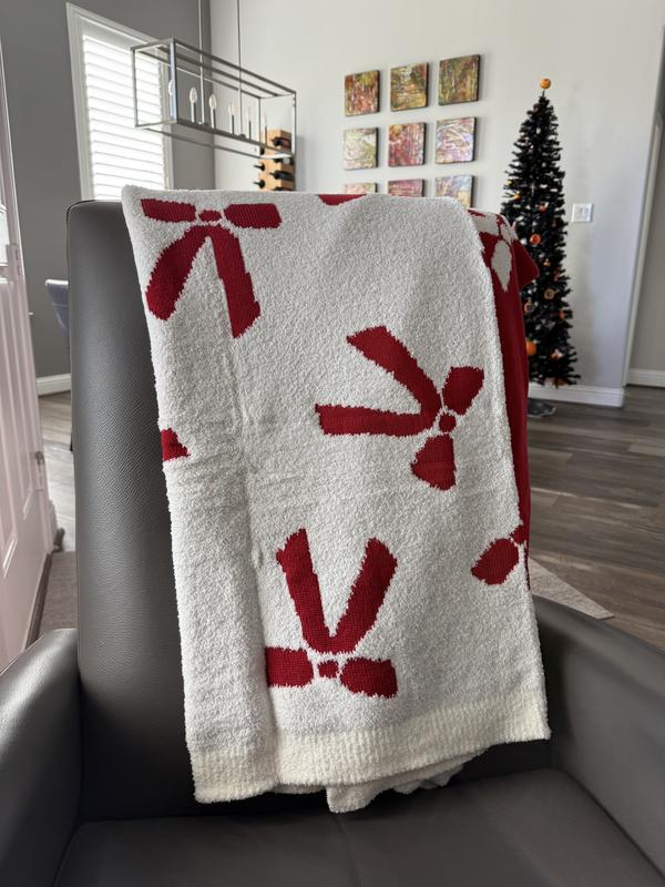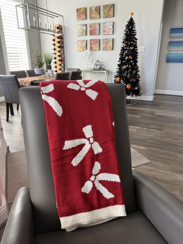 Cozy up on the couch with this beautiful throw blanket. The reversible blanket is red with white bows on one side and white with red bows on the other side. The soft material will keep you comfortable and warm. It’s the perfect size to snuggle up in while watching television, reading a book, or just resting.