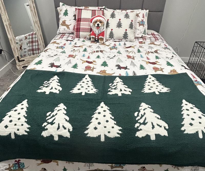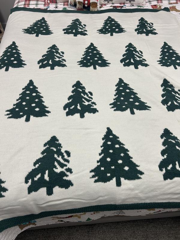 This throw was a great addition to our holiday guest room décor. The knit design is soft and cozy, and the festive pattern ties in beautifully with our puppy Christmas theme. It’s lightweight but warm and looks very nice folded at the end of the bed. Definitely recommend for a cheerful seasonal touch.