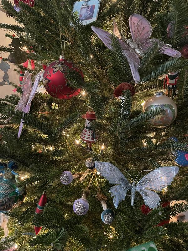Mushroom picks look really pretty added along with the lavender butterflies on this year’s tree.