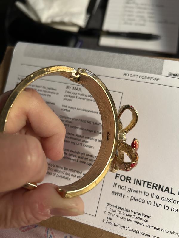 The metal was tarnished green on one of the bracelets. had to make a special trip to our nearest Macy's store which is 50 miles from home to return for a refund. Macy's products quality have gone downhill the past few years. Very disappointed customer.