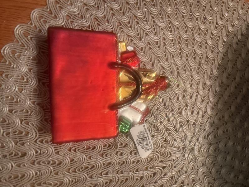 Macy's Glass Plaid Gift Bag Ornament, Macy's Exclusive