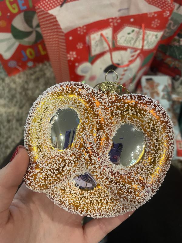 This is larger than I thought it would be and a very nice quality. I got it to go on the Christmas tree I put in my daughter's room that is lavender. we did a candy thing and it worked perfectly. This donut ornament is not plastic so do know that it is breakable