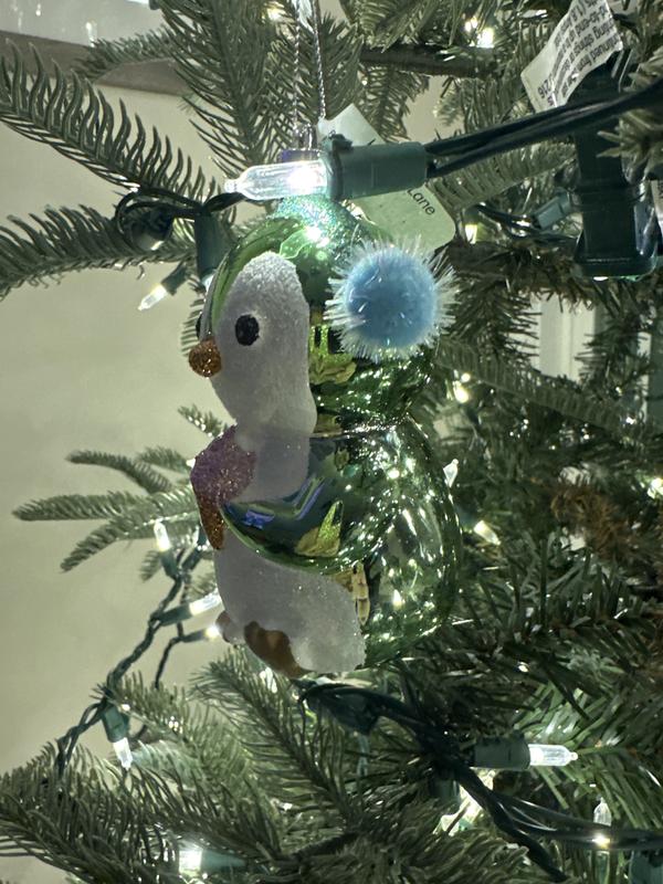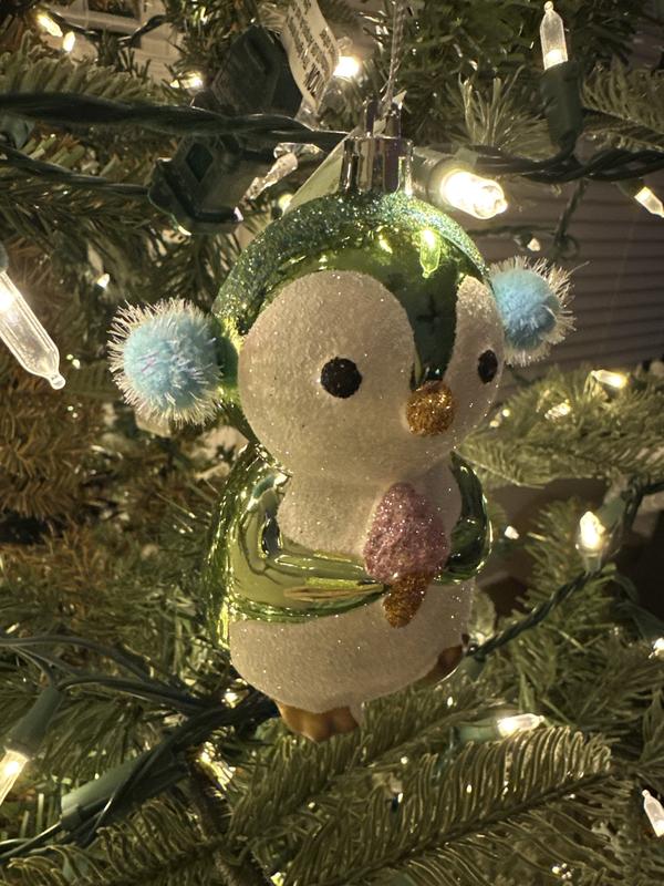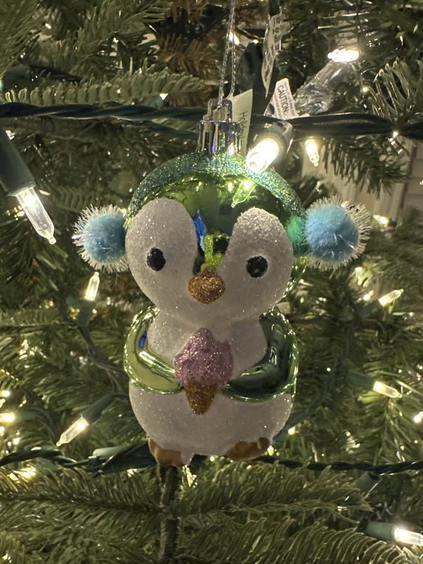 Little penguin is so jolly!! So adorable and cheery. So innocent! He is of good size. Shiny. It’s made of plastic so it’s durable & you don’t have to worry so much about breakage. Great gift tie on. You really can’t go wrong with this one. Would mix in beautifully with glass ornaments. Using this jolly little guy on our nature themed tree. :)