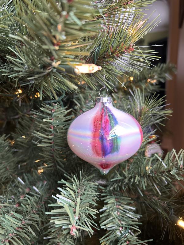 A beautiful crystal-look ornament. I loved the pink/blue shading.