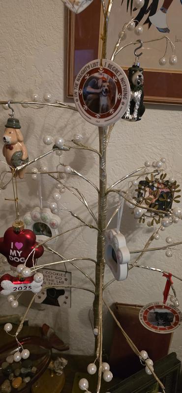 My two dogs have a special ornament tree in a corner of the living room. This ornament is a great addition to their tree and is so pretty.