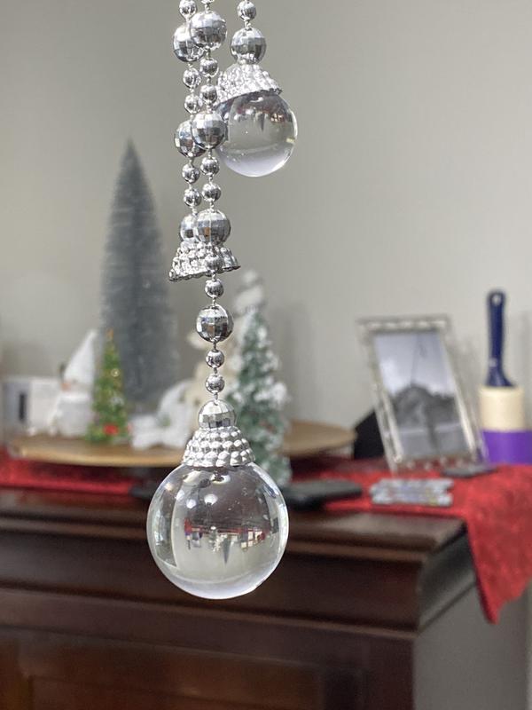 As with many other reviewers, my ornament arrived with one of the orbs detached. A little clear Gorilla Glue did the trick. The chains are plastic and not of the best quality. Otherwise, a very pretty ornament.