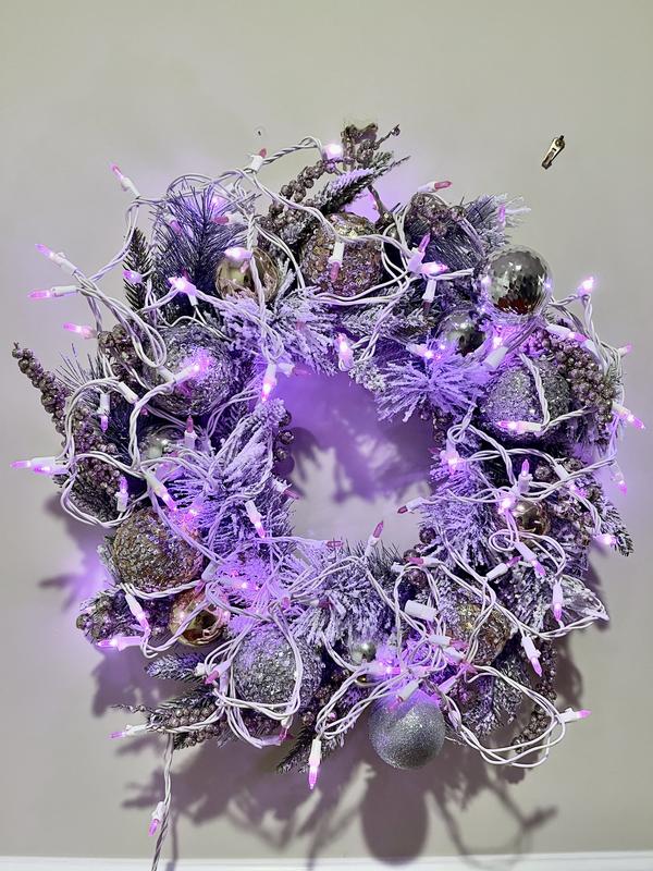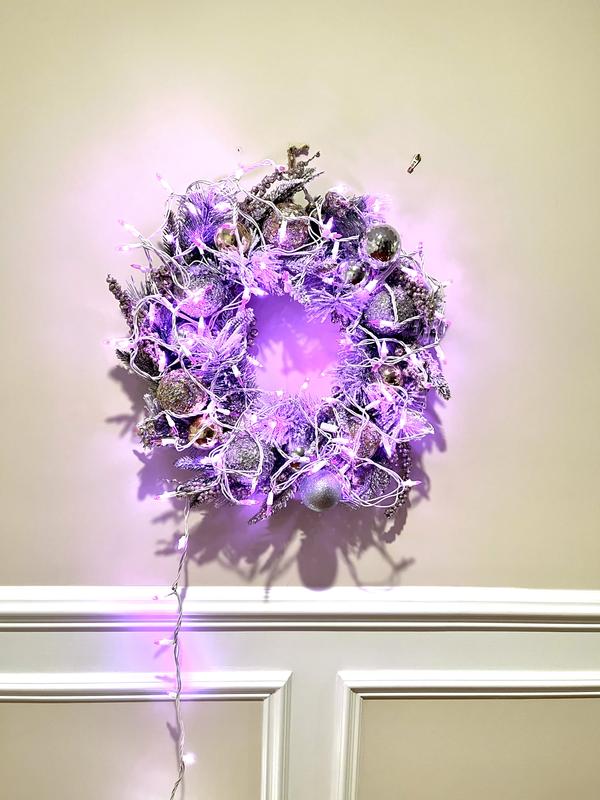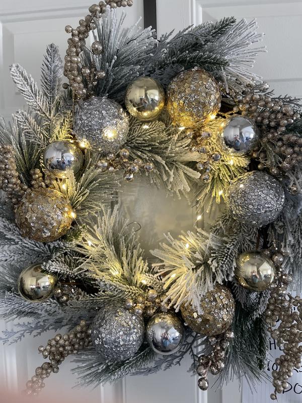 This is a beautiful wreath at a great place. It is very elegant with the silver and gold. It looks absolutely beautiful on my wall.