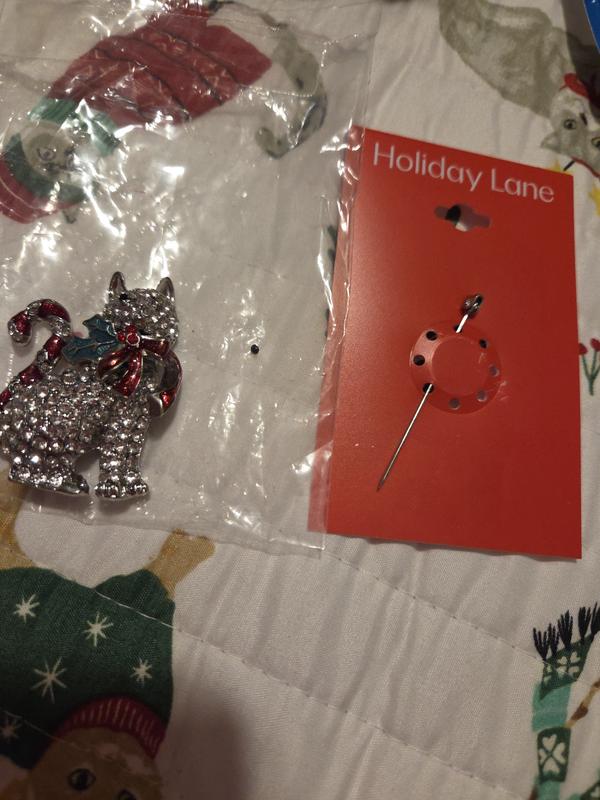 Given to my sister who loves cats. She was thrilled with this pin. Wore all holiday season long! Very good quality pin and the shiny stones are high quality.